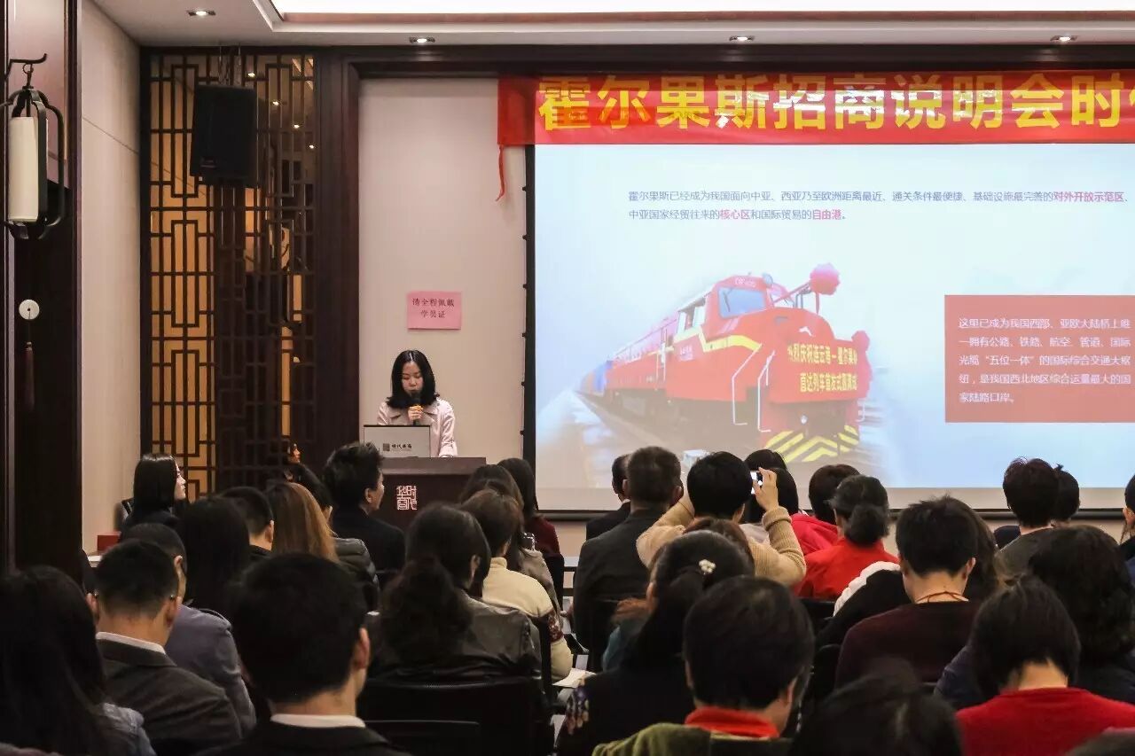 赵水仙在宣讲会上介绍,霍尔果斯是中国最西端向西开放的重要窗口,境内有世界唯一跨国境自贸区——中哈自贸区,它也是中国在西部地区最为重要的经济特区,具有全国最优惠的特区招商政策,具有“购物天堂,避税港湾”之美誉。同时它也是集边境区、口岸城、商贸型国际化特点为一体的综合城市,在国家大力推动“一带一路”战略的大时代背景下,将迎来前所未有的战略机遇期与黄金发展期。赵水仙还对区内的区位优势、优惠政策、投资环境等几大优势作了详细说明。
